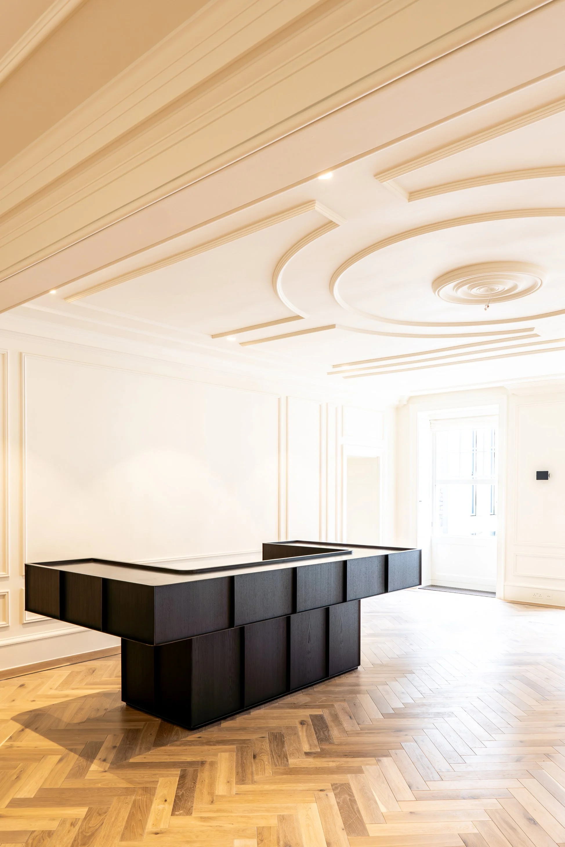 A private office in St James’s should feel like more than a workplace – it should feel like a London address. For this project at 5 St James’s Square, we worked with LA-based Two Muse Studio and their private client to create a suite of bespoke furniture pieces that bring a quietly luxurious, almost residential character to a Grade I listed setting.
